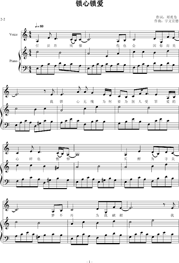 锁心锁爱——2011春节前最后一曲-钢琴谱(钢琴曲)-宇文宣德免费钢琴谱_五线谱: 点击: 1000 图片可能经过缩放,手机长按或点开后长按保存,电脑鼠标右键保存.