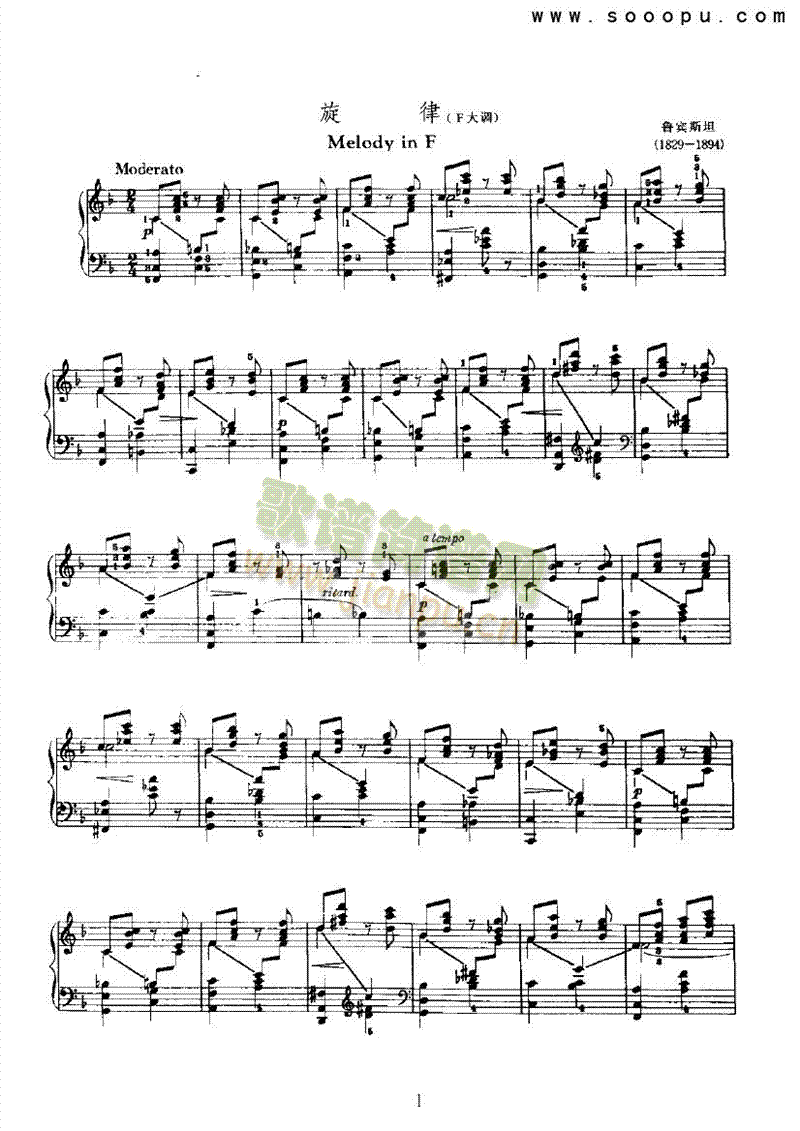 F大调旋律 键盘类 钢琴免费钢琴谱_五线谱:鲁宾斯坦 点击: 1000 图片可能经过缩放,手机长按或点开后长按保存,电脑鼠标右键保存.