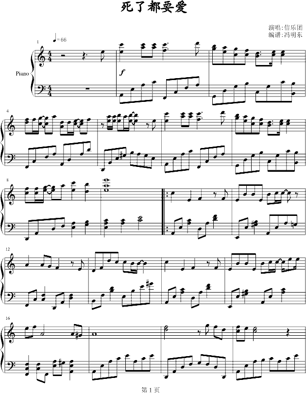死了都要爱-冯明东版免费钢琴谱_五线谱:信乐团 点击: 1000 图片可能经过缩放,手机长按或点开后长按保存,电脑鼠标右键保存.