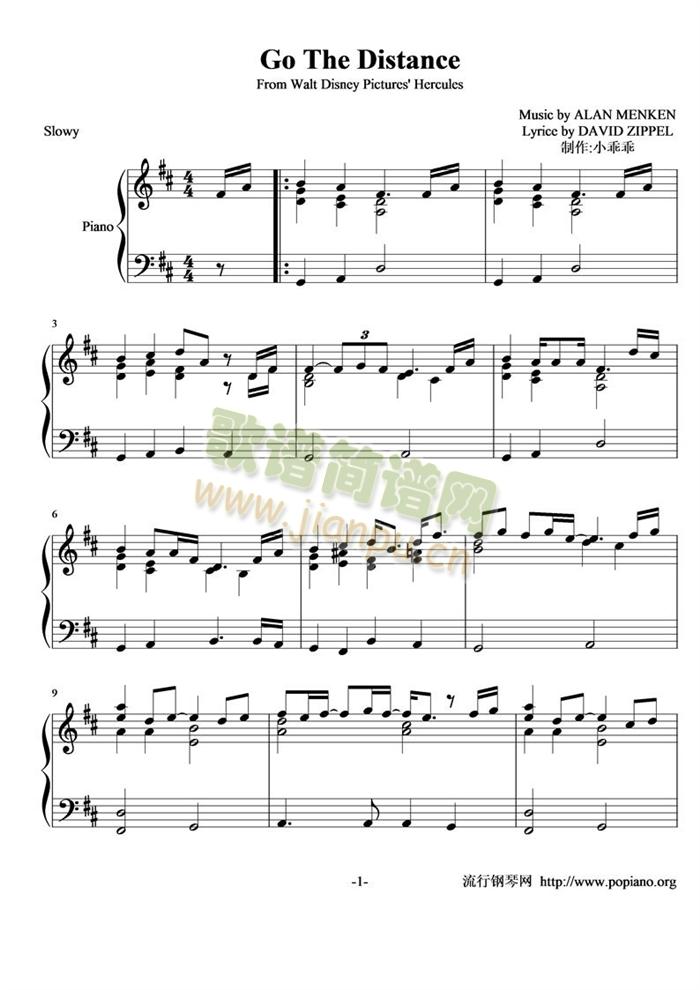 Go The Distance免费钢琴谱_五线谱: 点击: 1000 图片可能经过缩放,手机长按或点开后长按保存,电脑鼠标右键保存.