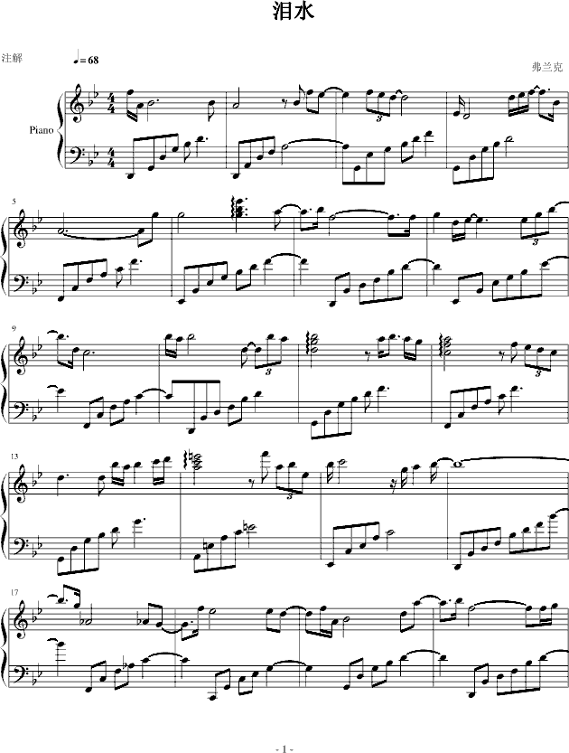 泪水-钢琴谱(钢琴曲)-弗兰克免费钢琴谱_五线谱: 点击: 1000 图片可能经过缩放,手机长按或点开后长按保存,电脑鼠标右键保存.