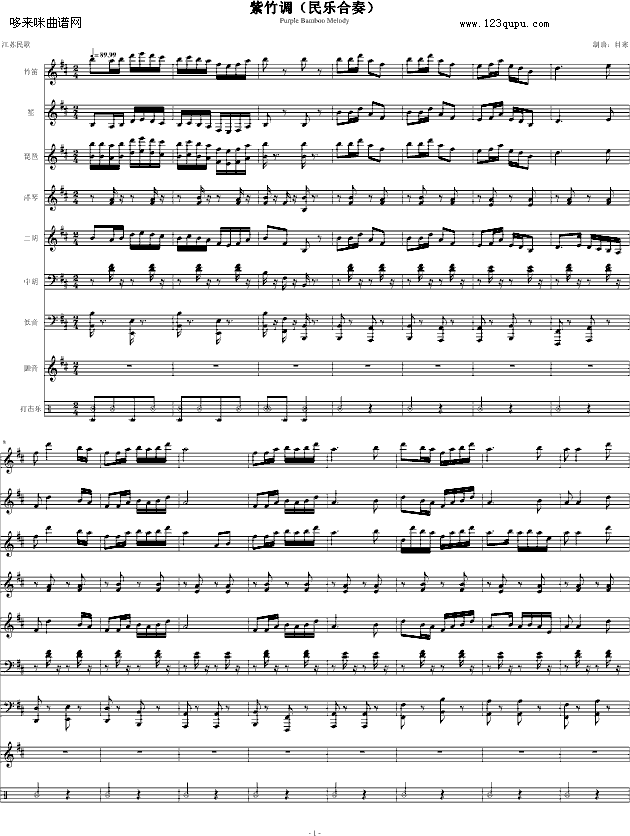紫竹调(民乐合奏)-中国名曲免费钢琴谱_五线谱:未知 点击: 1000 图片可能经过缩放,手机长按或点开后长按保存,电脑鼠标右键保存.