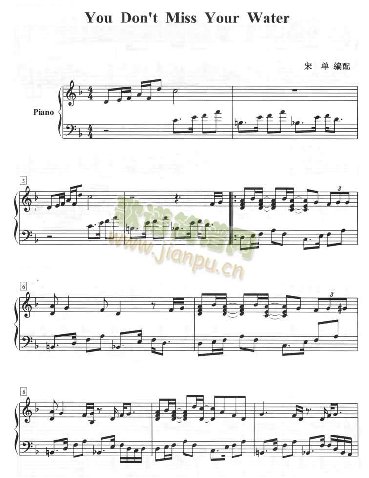 You dont Miss Your Water(钢琴五线谱)免费钢琴谱_五线谱:钢琴演奏乐谱 点击: 1000 图片可能经过缩放,手机长按或点开后长按保存,电脑鼠标右键保存.