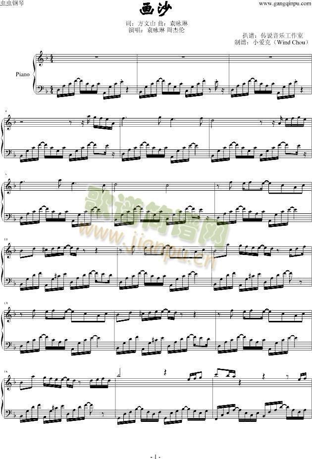 画沙免费钢琴谱_五线谱:周杰伦袁咏琳 点击: 1000 图片可能经过缩放,手机长按或点开后长按保存,电脑鼠标右键保存.