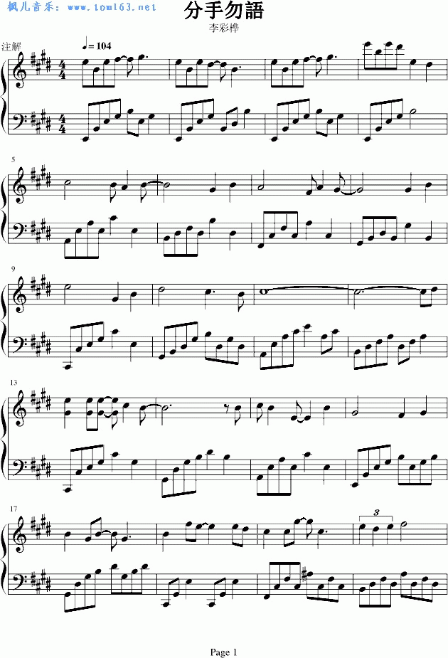 分手物语免费钢琴谱_五线谱:李彩桦 点击: 1000 图片可能经过缩放,手机长按或点开后长按保存,电脑鼠标右键保存.