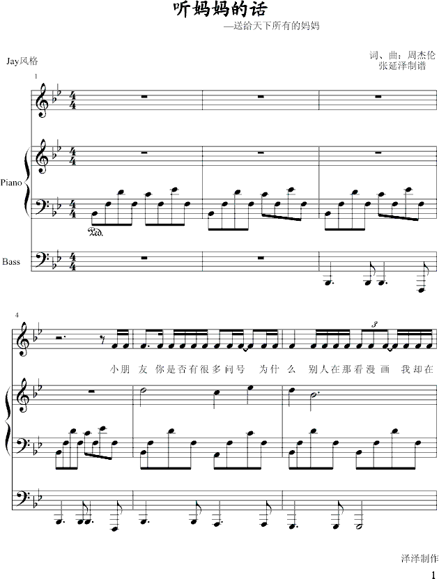 听妈妈的话-弹唱-试听版免费钢琴谱_五线谱:周杰伦 点击: 1000 图片可能经过缩放,手机长按或点开后长按保存,电脑鼠标右键保存.