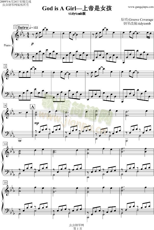 上帝是女孩免费钢琴谱_五线谱:GrooveCoverage 点击: 1000 图片可能经过缩放,手机长按或点开后长按保存,电脑鼠标右键保存.