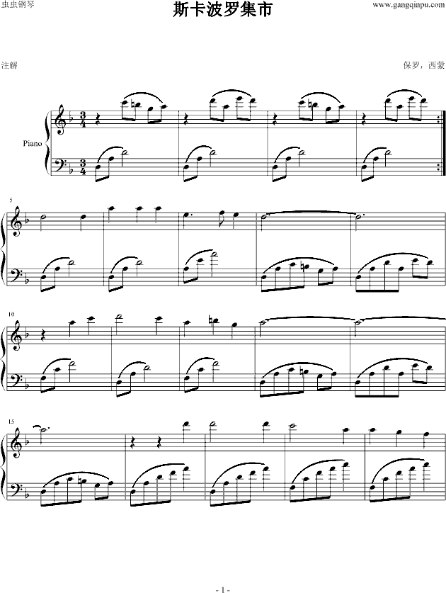 斯卡波罗集市-钢琴谱(钢琴曲)-保罗西蒙免费钢琴谱_五线谱: 点击: 1000 图片可能经过缩放,手机长按或点开后长按保存,电脑鼠标右键保存.