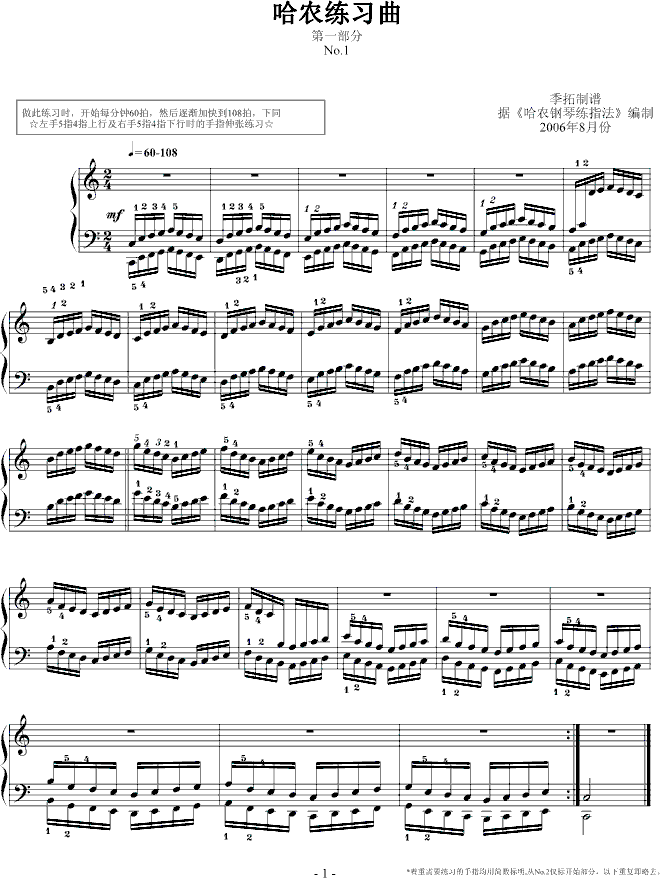 哈农指法练习1-我学钢琴免费钢琴谱_五线谱:哈农 点击: 1000 图片可能经过缩放,手机长按或点开后长按保存,电脑鼠标右键保存.