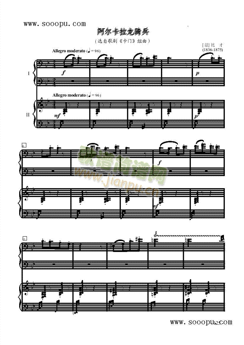阿尔卡拉骑兵—双钢琴 键盘类 钢琴免费钢琴谱_五线谱:[法]比才 点击: 1000 图片可能经过缩放,手机长按或点开后长按保存,电脑鼠标右键保存.