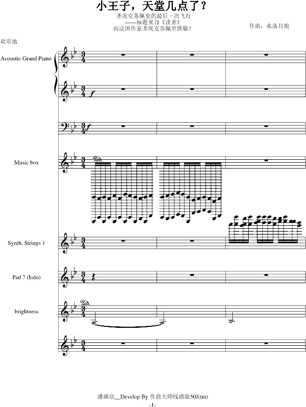 小王子,天堂几点了?-钢琴谱(钢琴曲)-水落月痕免费钢琴谱_五线谱: 点击: 1000 图片可能经过缩放,手机长按或点开后长按保存,电脑鼠标右键保存.