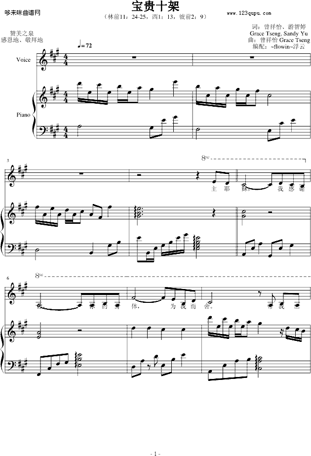 宝贵十架-赞美之泉免费钢琴谱_五线谱:未知 点击: 1000 图片可能经过缩放,手机长按或点开后长按保存,电脑鼠标右键保存.