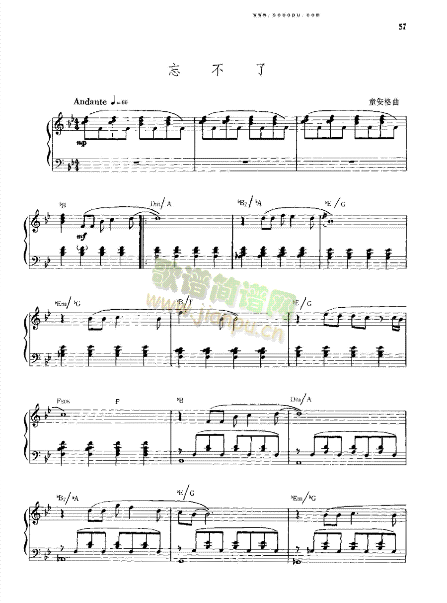 忘不了 键盘类 钢琴免费钢琴谱_五线谱:童安格 点击: 1000 图片可能经过缩放,手机长按或点开后长按保存,电脑鼠标右键保存.