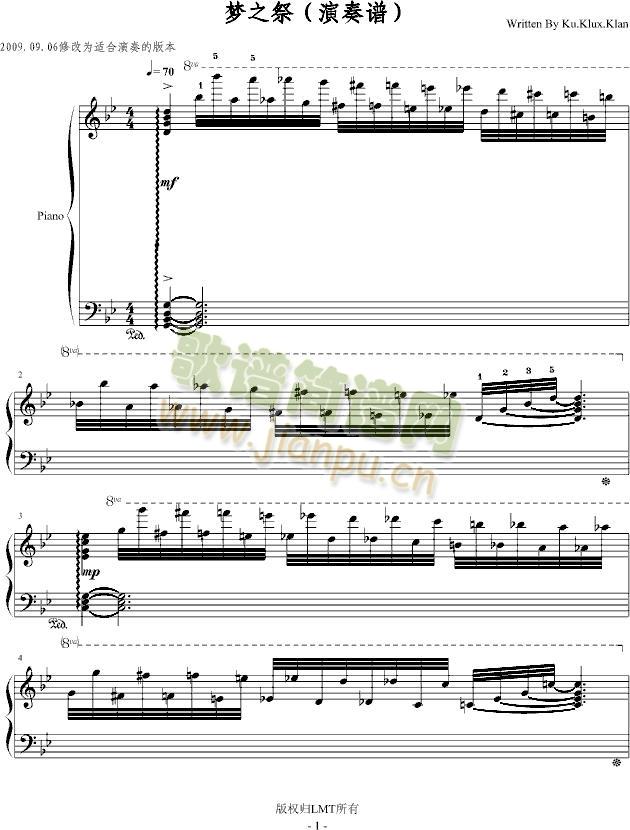 梦之祭免费钢琴谱_五线谱: 点击: 1000 图片可能经过缩放,手机长按或点开后长按保存,电脑鼠标右键保存.