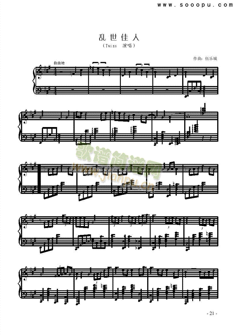 乱世佳人—原版 键盘类 钢琴免费钢琴谱_五线谱:Twins 点击: 1000 图片可能经过缩放,手机长按或点开后长按保存,电脑鼠标右键保存.