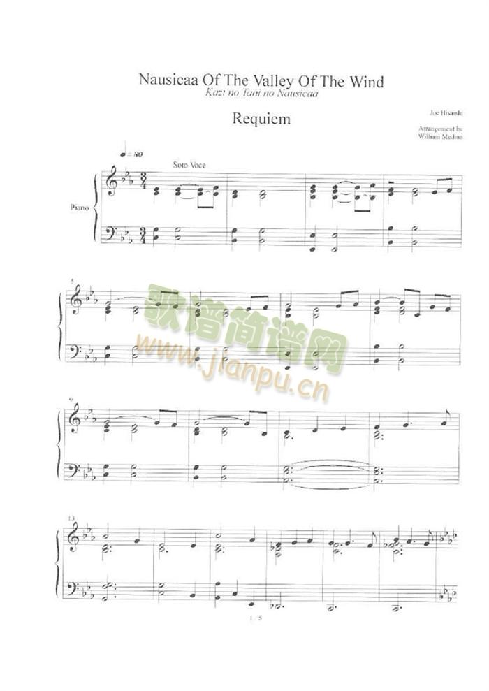 Nausicaa Of The Valley Of The Wind - Requiem免费钢琴谱_五线谱: 点击: 1000 图片可能经过缩放,手机长按或点开后长按保存,电脑鼠标右键保存.