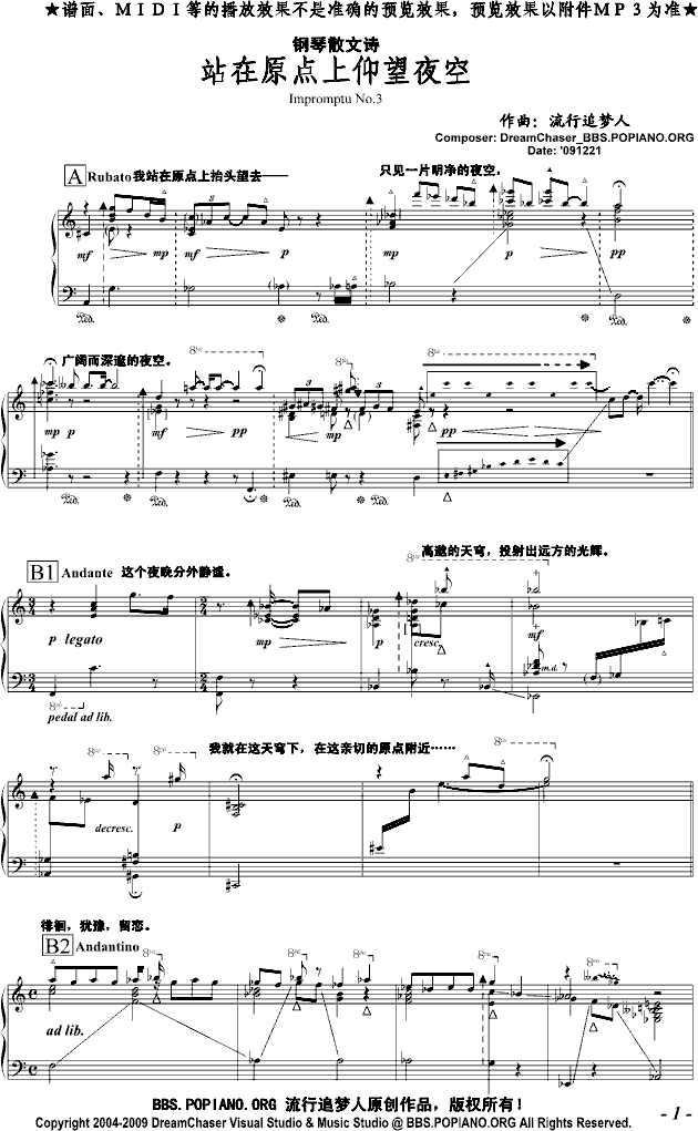 钢琴散文:站在原点上仰望夜空-钢琴谱(钢琴曲)-流行追梦人免费钢琴谱_五线谱: 点击: 1000 图片可能经过缩放,手机长按或点开后长按保存,电脑鼠标右键保存.