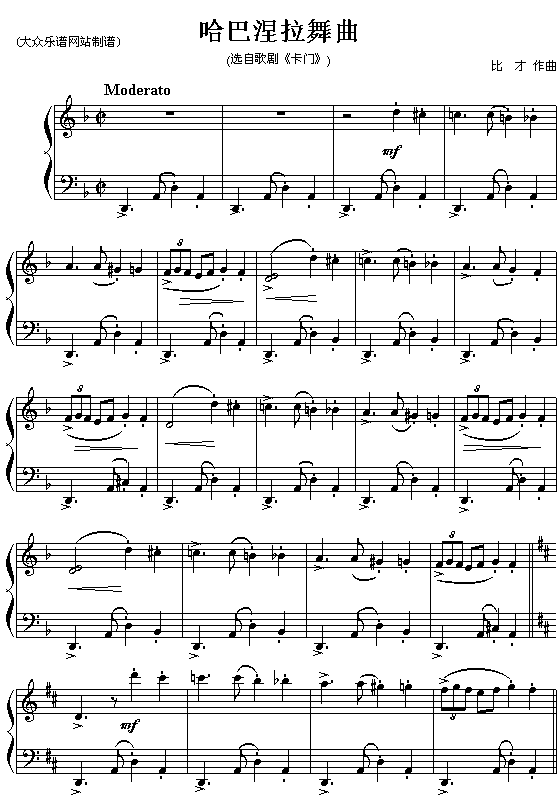 (法)比才“卡门”选曲:哈巴涅拉舞曲免费钢琴谱_五线谱:未知 点击: 1000 图片可能经过缩放,手机长按或点开后长按保存,电脑鼠标右键保存.