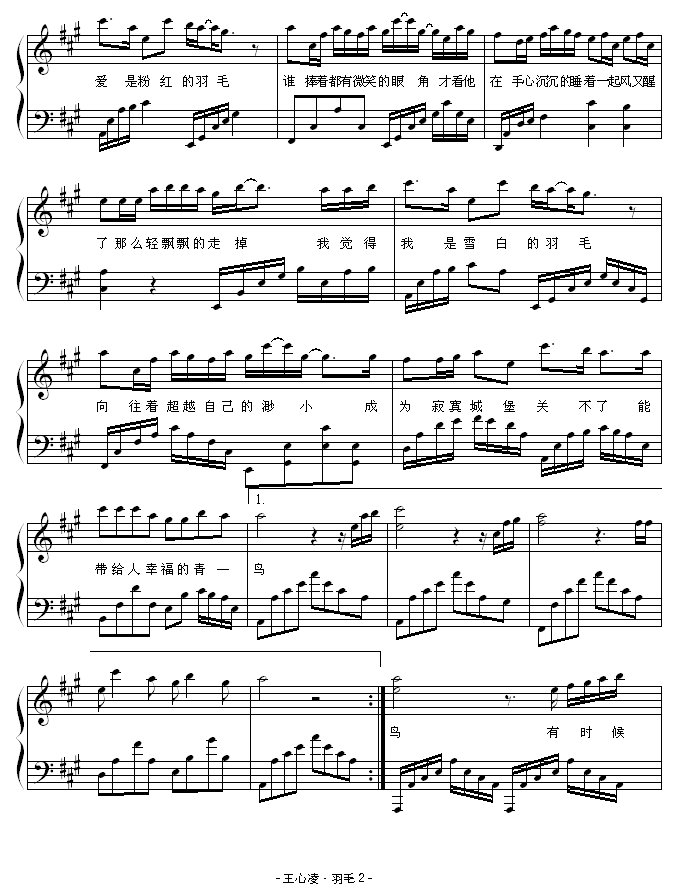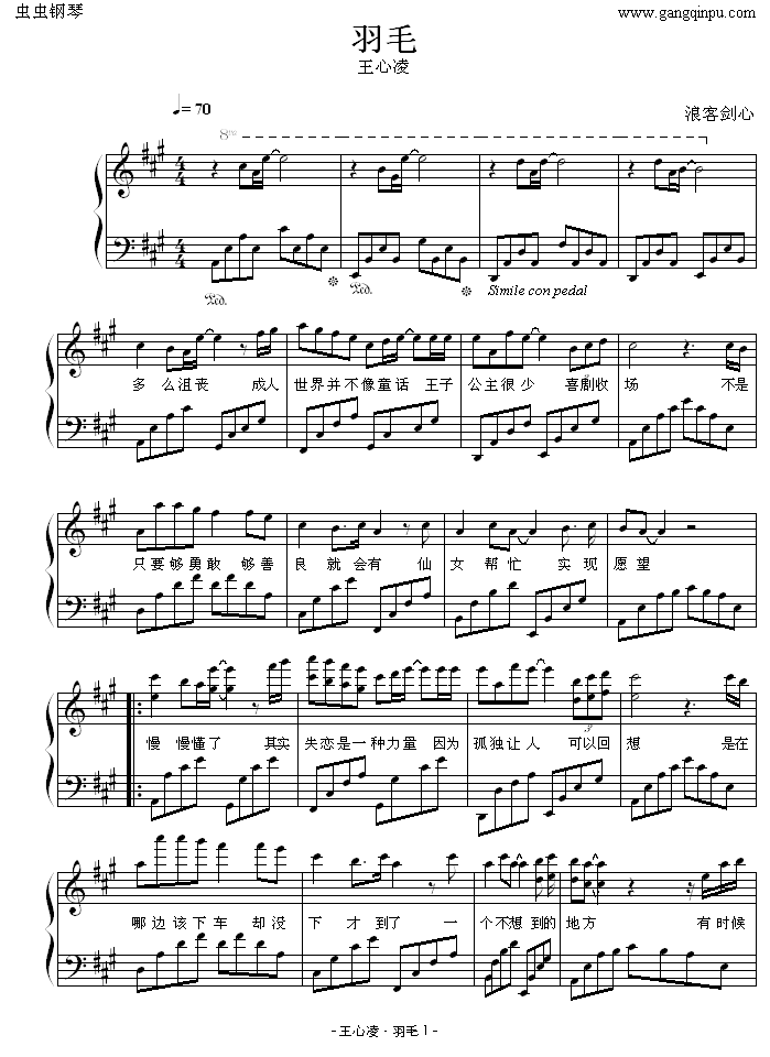 羽毛-演奏版免费钢琴谱_五线谱:王心凌 点击: 1000 图片可能经过缩放,手机长按或点开后长按保存,电脑鼠标右键保存.