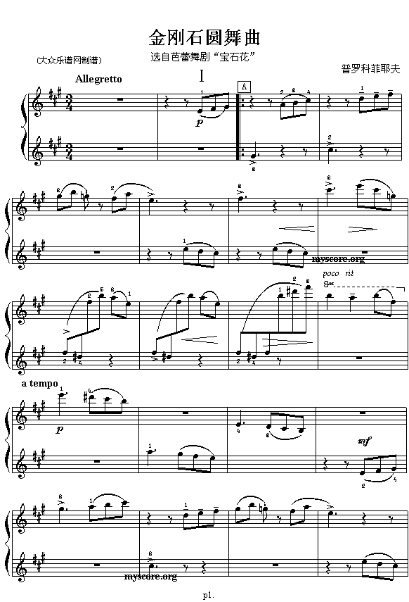 (俄)普罗科菲耶夫:金刚石圆舞曲(钢琴四手联弹)免费钢琴谱_五线谱: 点击: 1000 图片可能经过缩放,手机长按或点开后长按保存,电脑鼠标右键保存.