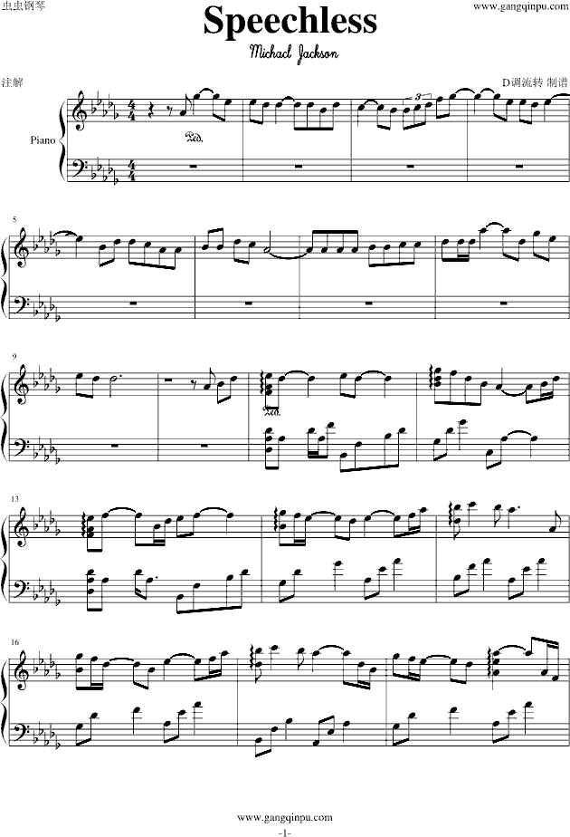 Speechless(MJ 纪念版)-钢琴谱(钢琴曲)-迈克杰克逊免费钢琴谱_五线谱: 点击: 1000 图片可能经过缩放,手机长按或点开后长按保存,电脑鼠标右键保存.