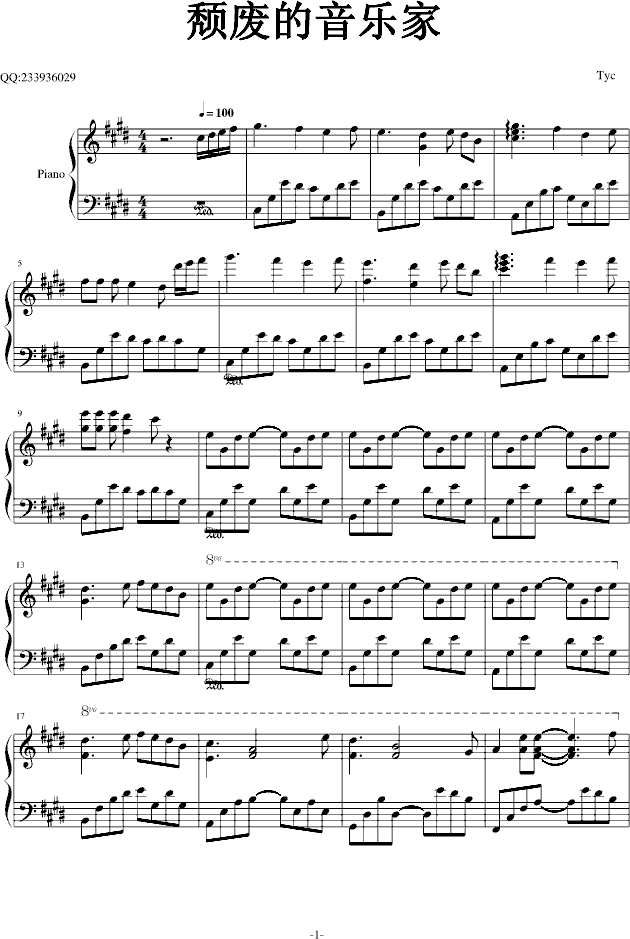 颓废的音乐家-钢琴谱(钢琴曲)-like7免费钢琴谱_五线谱: 点击: 1000 图片可能经过缩放,手机长按或点开后长按保存,电脑鼠标右键保存.