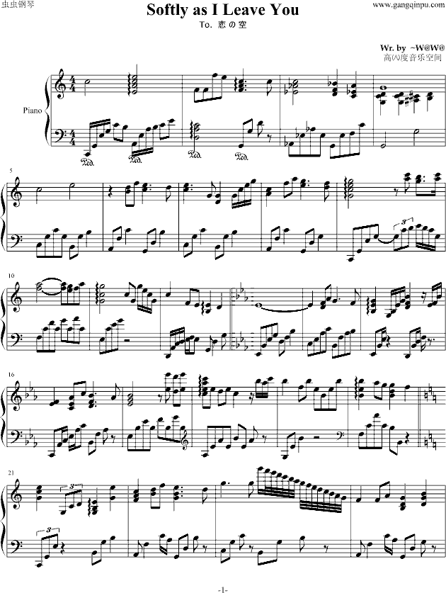 Softly as I Leave You-钢琴谱(钢琴曲)-Danny Wright免费钢琴谱_五线谱: 点击: 1000 图片可能经过缩放,手机长按或点开后长按保存,电脑鼠标右键保存.