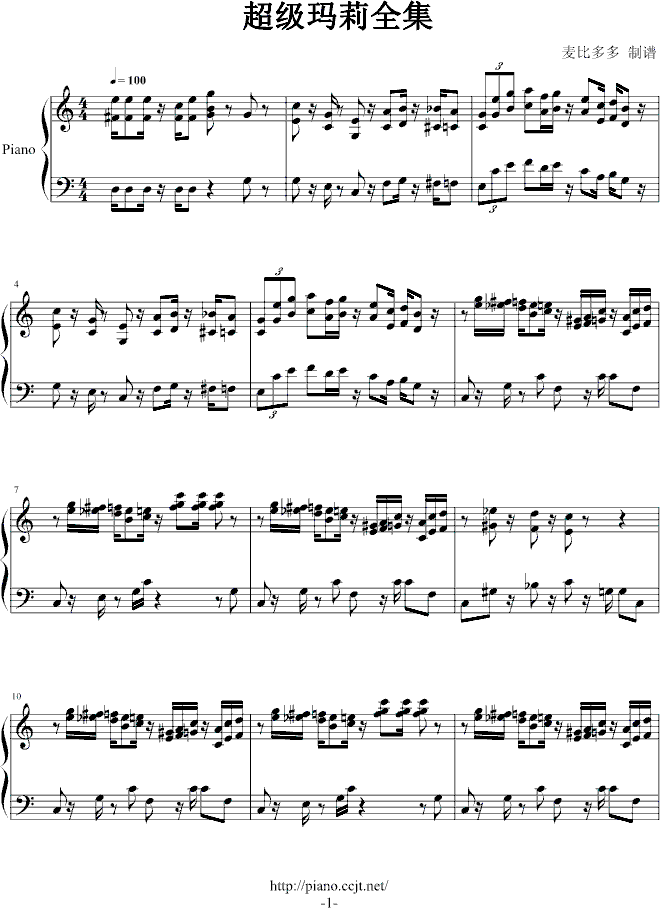 超级玛莉-全集免费钢琴谱_五线谱:游戏 点击: 1000 图片可能经过缩放,手机长按或点开后长按保存,电脑鼠标右键保存.