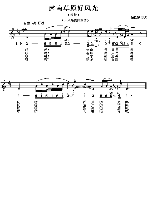 裕固族民歌:肃南草原好风光(简线对照)免费钢琴谱_五线谱:未知 点击: 1000 图片可能经过缩放,手机长按或点开后长按保存,电脑鼠标右键保存.