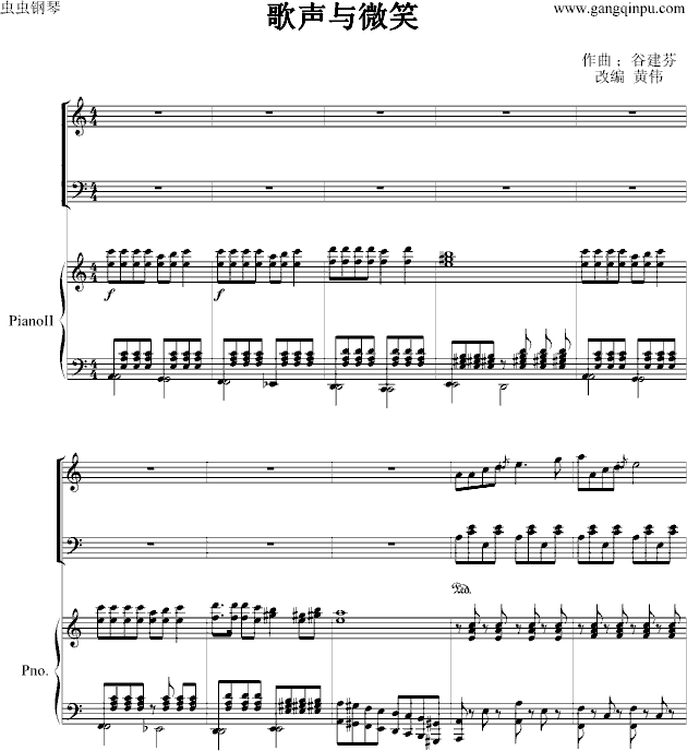 歌声与微笑 双钢琴 炫技版-钢琴谱(钢琴曲)-儿童歌曲免费钢琴谱_五线谱: 点击: 1000 图片可能经过缩放,手机长按或点开后长按保存,电脑鼠标右键保存.