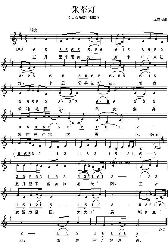福建民歌:采茶灯(简线对照)免费钢琴谱_五线谱:未知 点击: 1000 图片可能经过缩放,手机长按或点开后长按保存,电脑鼠标右键保存.
