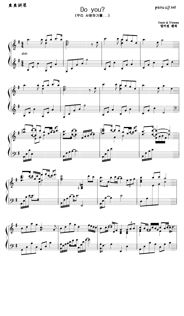 do you-钢琴谱(钢琴曲)-Yiruma免费钢琴谱_五线谱: 点击: 1000 图片可能经过缩放,手机长按或点开后长按保存,电脑鼠标右键保存.
