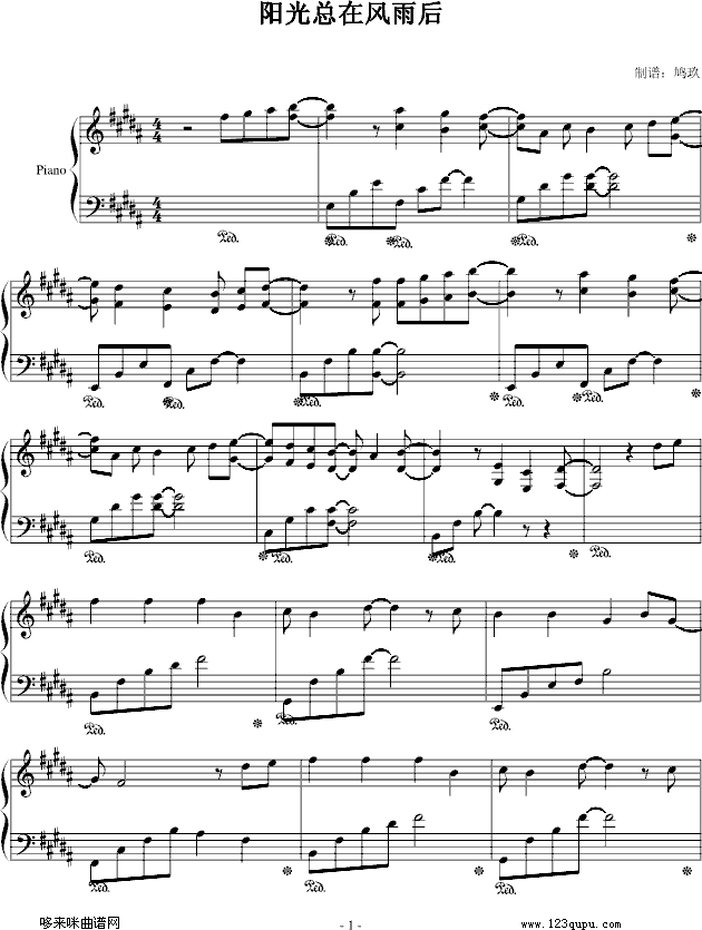 阳光总在风雨后-鸠玖版-许美静免费钢琴谱_五线谱:未知 点击: 1000 图片可能经过缩放,手机长按或点开后长按保存,电脑鼠标右键保存.