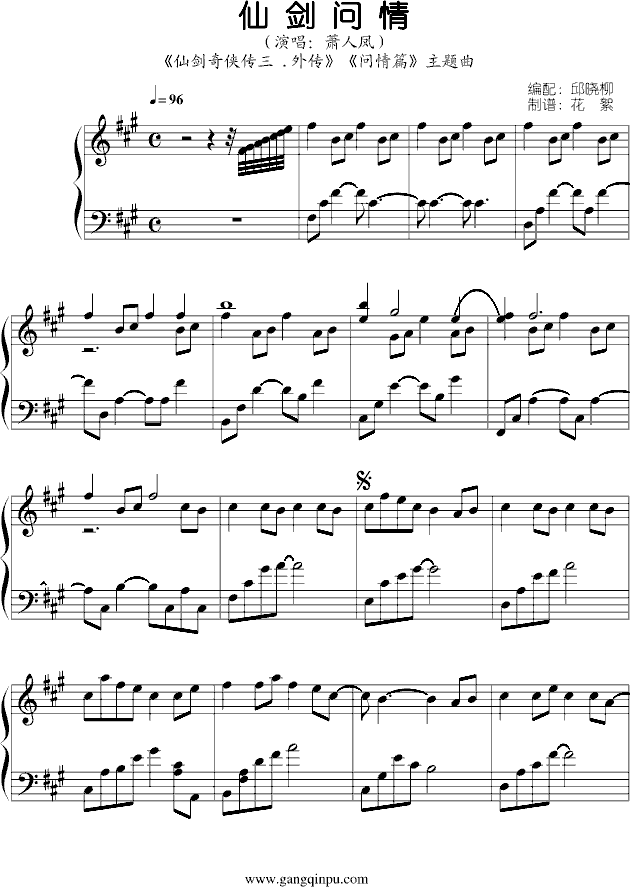 仙剑问情免费钢琴谱_五线谱:动漫影视 点击: 1000 图片可能经过缩放,手机长按或点开后长按保存,电脑鼠标右键保存.