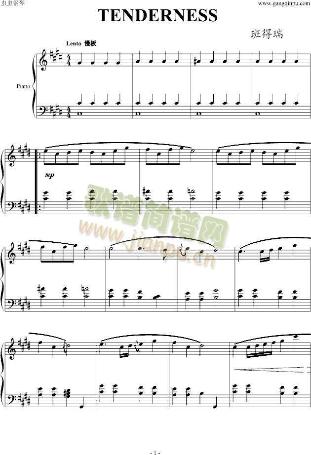 TENDERNESS免费钢琴谱_五线谱:班得瑞-Bandari 点击: 1000 图片可能经过缩放,手机长按或点开后长按保存,电脑鼠标右键保存.
