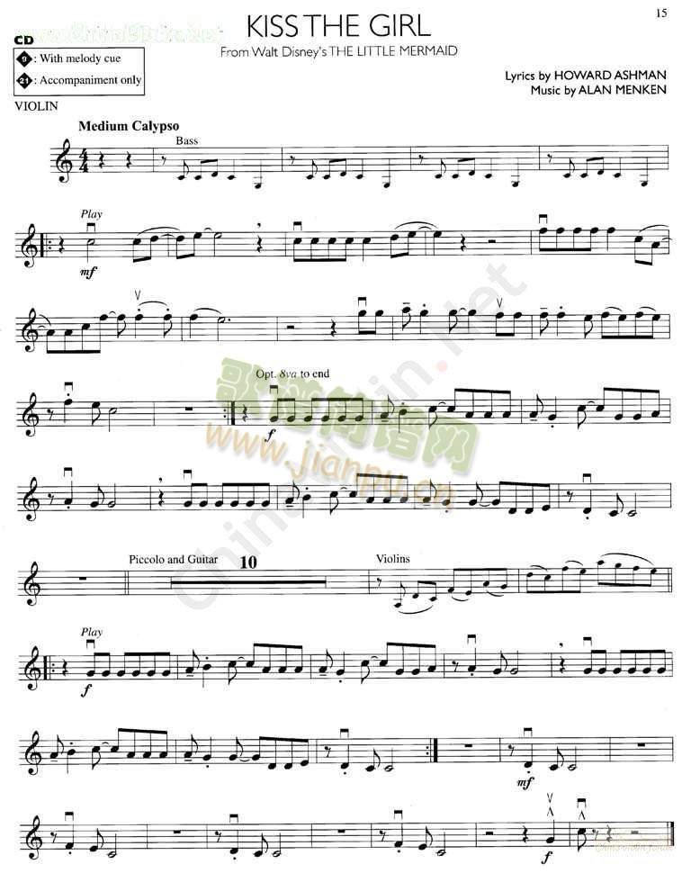 KISS THE GIRL免费钢琴谱_五线谱:未知 点击: 1000 图片可能经过缩放,手机长按或点开后长按保存,电脑鼠标右键保存.