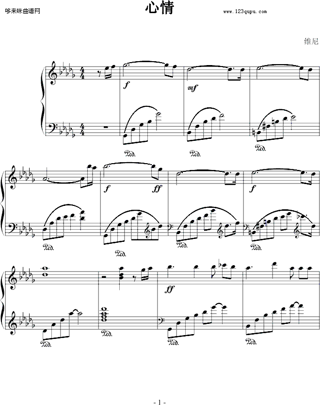 心情-维尼免费钢琴谱_五线谱:未知 点击: 1000 图片可能经过缩放,手机长按或点开后长按保存,电脑鼠标右键保存.