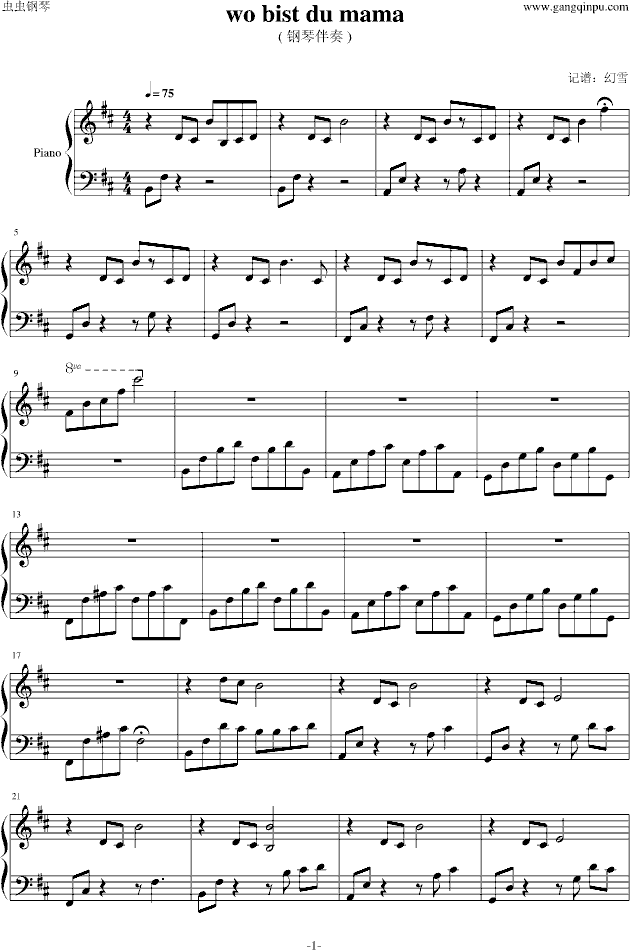 Wo bist du mama伴奏-钢琴谱(钢琴曲)-Lafee免费钢琴谱_五线谱: 点击: 1000 图片可能经过缩放,手机长按或点开后长按保存,电脑鼠标右键保存.