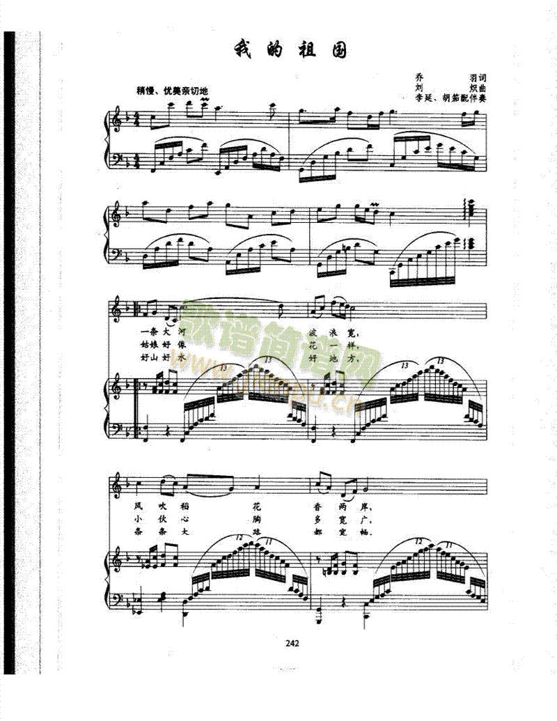 我的祖国 歌曲类 钢琴伴奏谱免费钢琴谱_五线谱:乔羽 点击: 1000 图片可能经过缩放,手机长按或点开后长按保存,电脑鼠标右键保存.