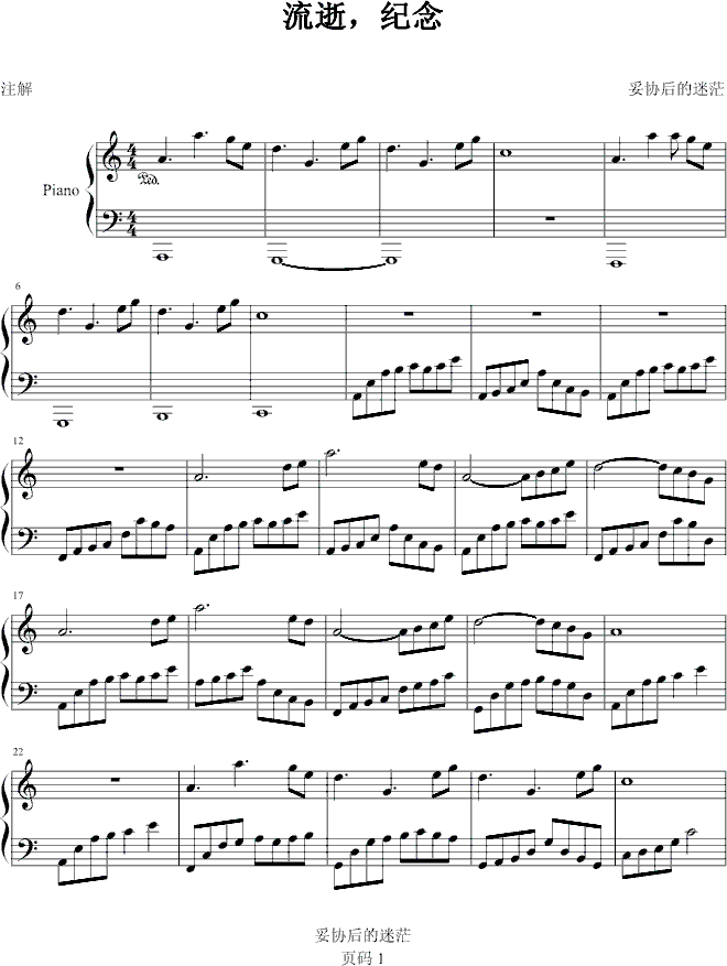 流逝,纪念免费钢琴谱_五线谱:妥协后的迷茫 点击: 1000 图片可能经过缩放,手机长按或点开后长按保存,电脑鼠标右键保存.
