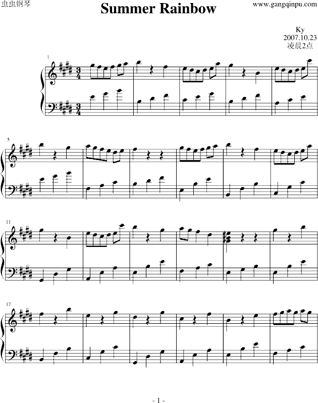 Summer rainbow-钢琴谱(钢琴曲)-未知分类免费钢琴谱_五线谱: 点击: 1000 图片可能经过缩放,手机长按或点开后长按保存,电脑鼠标右键保存.