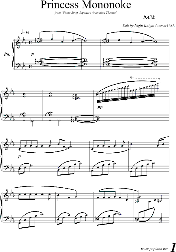 Princess Mononoke-钢琴谱(钢琴曲)-久石让免费钢琴谱_五线谱: 点击: 1000 图片可能经过缩放,手机长按或点开后长按保存,电脑鼠标右键保存.