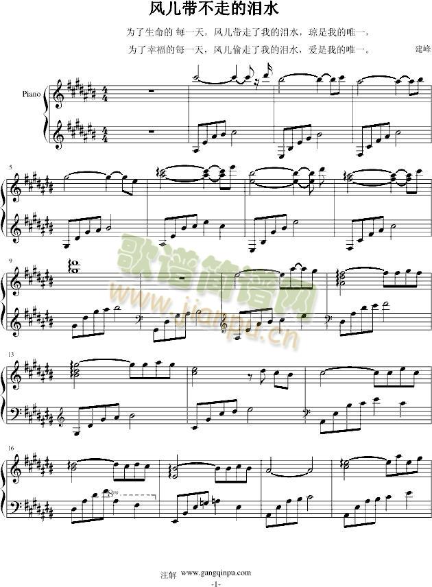 风儿带不走的泪水免费钢琴谱_五线谱: 点击: 1000 图片可能经过缩放,手机长按或点开后长按保存,电脑鼠标右键保存.