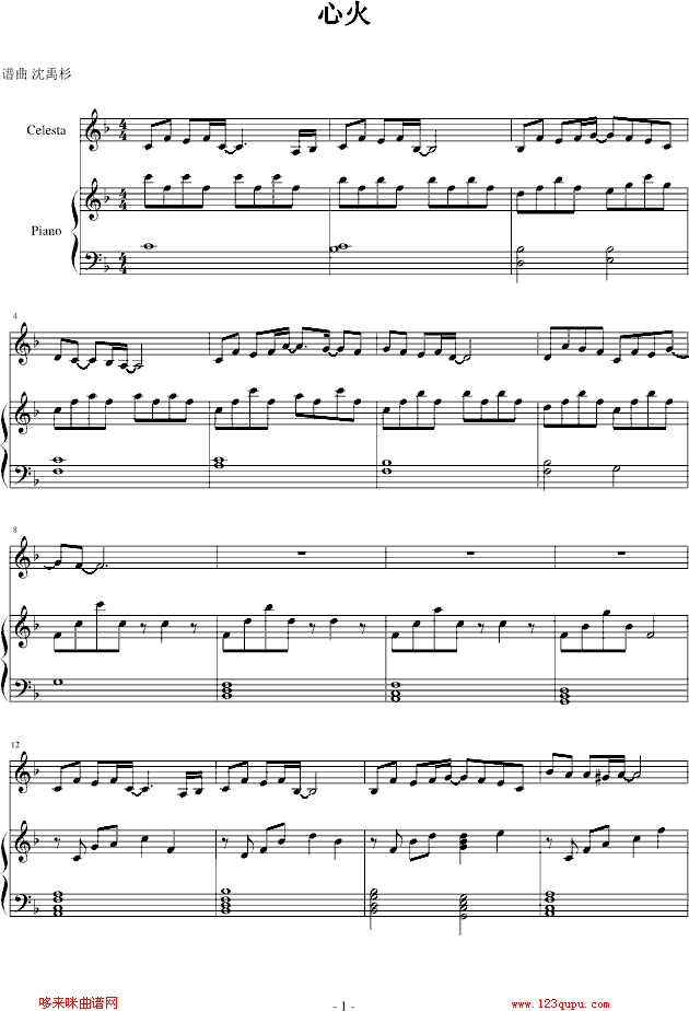 精灵世纪插曲《心火》-动漫影视免费钢琴谱_五线谱:未知 点击: 1000 图片可能经过缩放,手机长按或点开后长按保存,电脑鼠标右键保存.