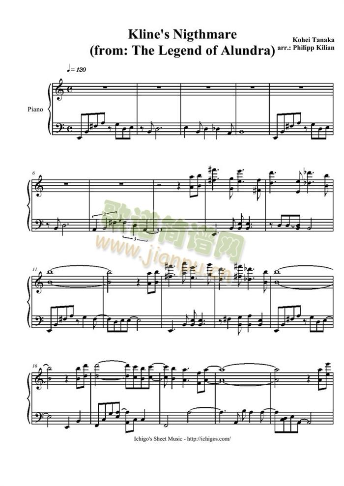 Klines Nightmare免费钢琴谱_五线谱: 点击: 1000 图片可能经过缩放,手机长按或点开后长按保存,电脑鼠标右键保存.