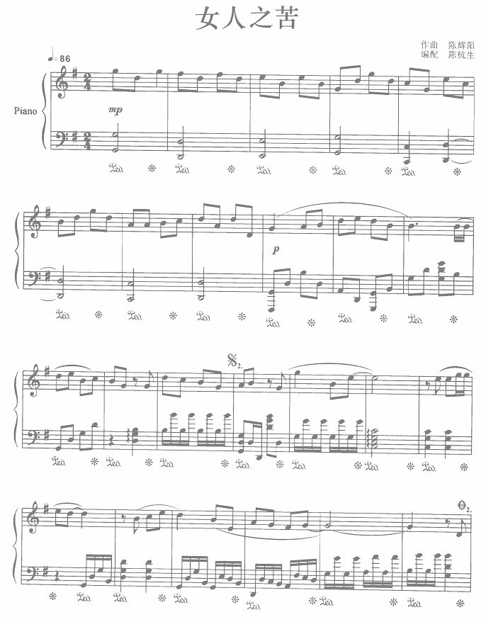 女人之苦免费钢琴谱_五线谱:原唱梅艳芳 点击: 1000 图片可能经过缩放,手机长按或点开后长按保存,电脑鼠标右键保存.