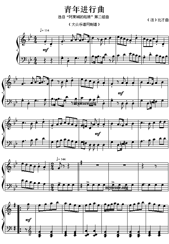 (法)比才歌剧“阿莱城姑娘”选曲:青年进行曲免费钢琴谱_五线谱:未知 点击: 1000 图片可能经过缩放,手机长按或点开后长按保存,电脑鼠标右键保存.