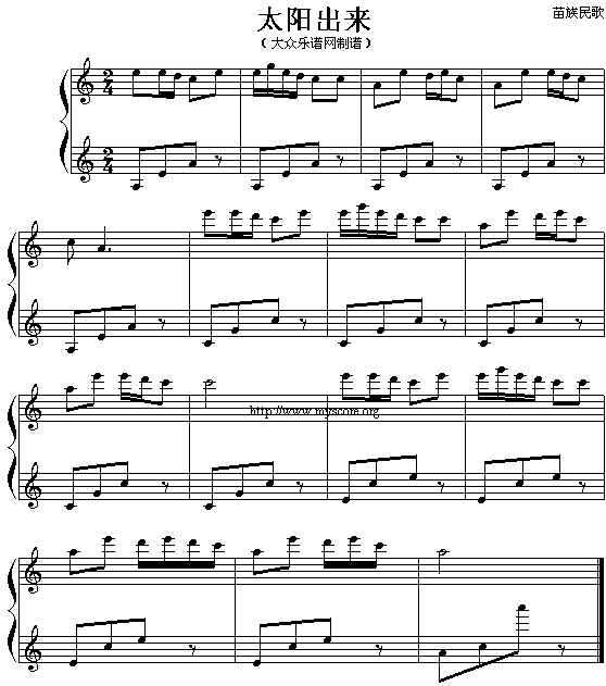 太阳出来(苗族民歌)免费钢琴谱_五线谱: 点击: 1000 图片可能经过缩放,手机长按或点开后长按保存,电脑鼠标右键保存.