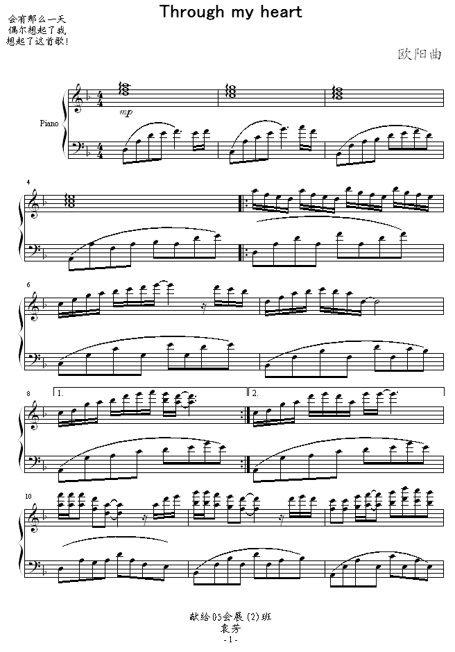Through my heart免费钢琴谱_五线谱:欧阳易 点击: 1000 图片可能经过缩放,手机长按或点开后长按保存,电脑鼠标右键保存.