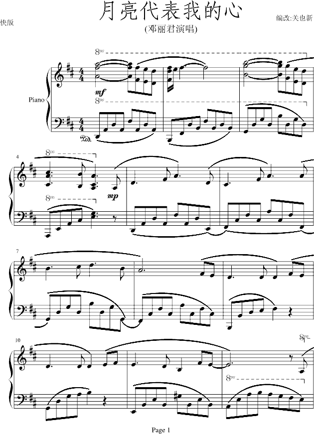 月亮代表我的心-关也新版-钢琴谱(钢琴曲)-邓丽君免费钢琴谱_五线谱: 点击: 1000 图片可能经过缩放,手机长按或点开后长按保存,电脑鼠标右键保存.